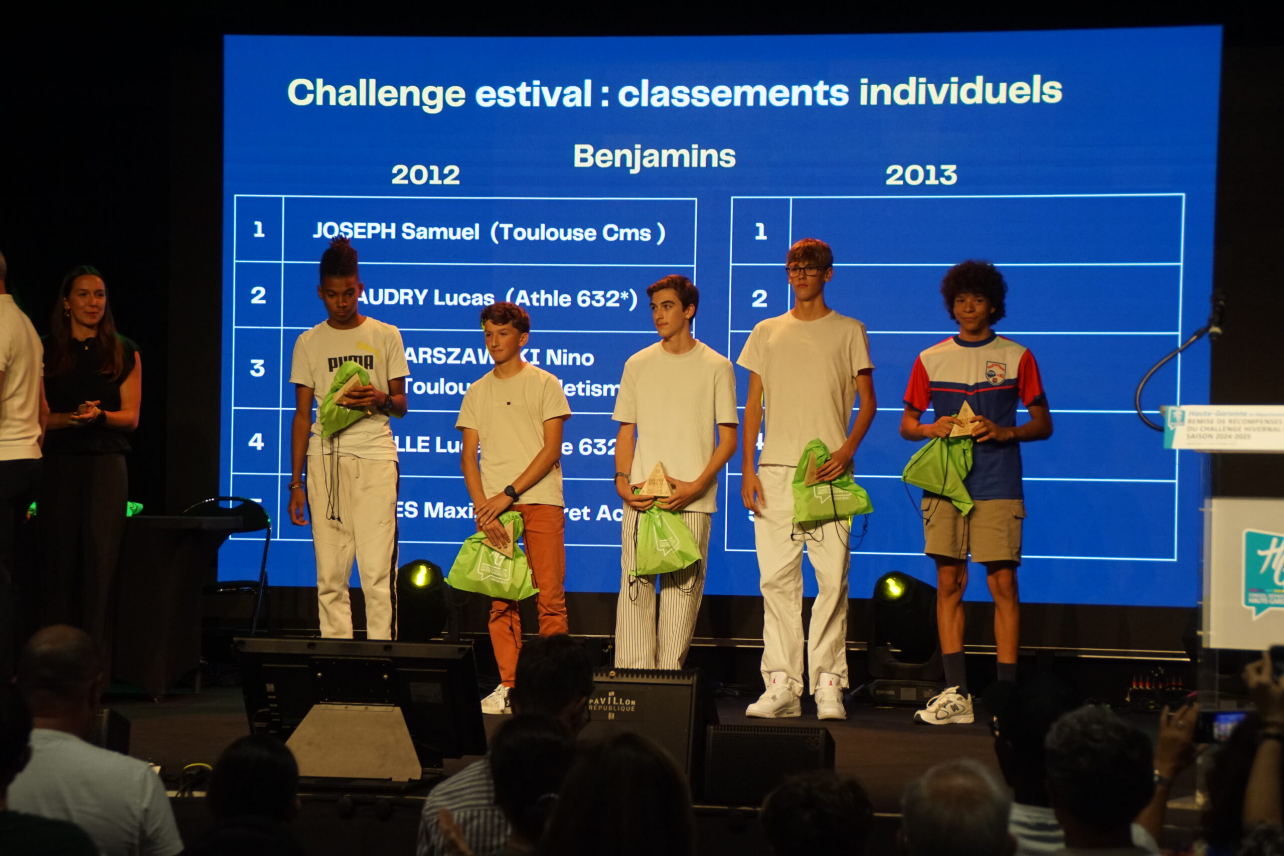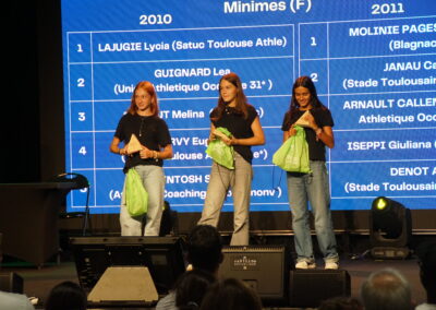 Belle soirée pour le Stade Toulousain Athlétisme ! Le mercredi 17 septembre 2025, quatre de nos jeunes talents ont été mis à l’honneur lors de la cérémonie de remise des récompenses du Challenge Estival BE-MI, organisée par le Comité Départemental d’Athlétisme de la Haute-Garonne au Pavillon République du Conseil départemental.